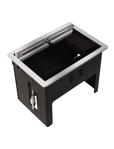 T-IN2-REC2 — Встраиваемый в поверхность мебели для конференц-залов (стола, кафедры, трибуны и т.д.) прямоугольный модуль с крышкой, предназначенный для кабельных подключений ноутбуков или иных персональных устройств участников. Модуль легко устанавливается с верхней стороны рабочей поверхности сквозь заранее подготовленное отверстие и фиксируется снизу посредством прижимных струбцин. При помощи рамки и двух модульных вставок с разъёмами формируется необходимая конфигурация. Вставки легко и быстро устанавливаются и фиксируются при помощи специального интегрированного запирающего устройства. Благодаря тонкой выступающей части, элегантному дизайну и двум доступным вариантам цвета встраиваемые модули T-In идеально интегрируются в рабочую поверхность, способствуя аккуратному виду рабочего места и не нарушая функциональность офисной мебели.