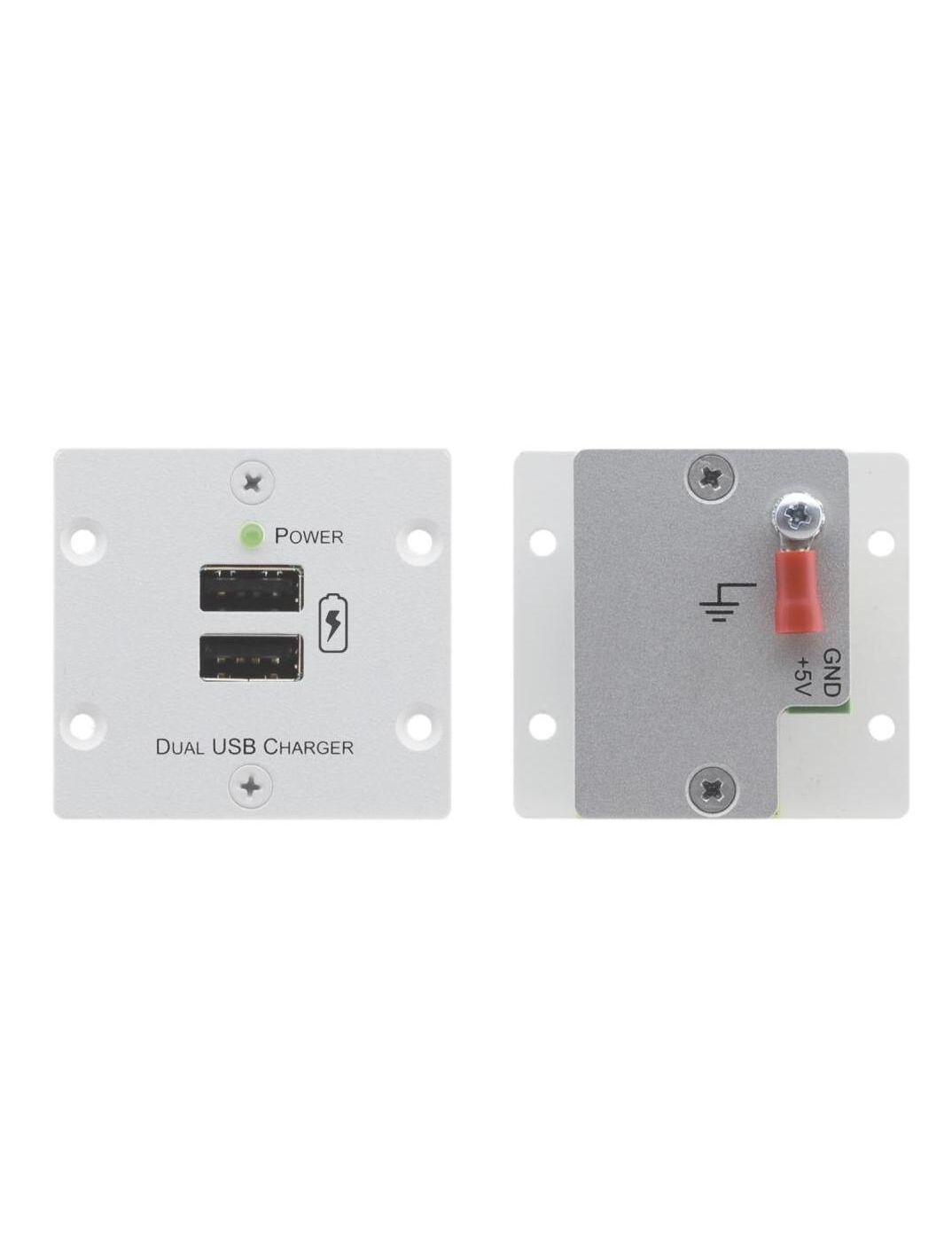 Вставка в стенную панель, представляющая собой зарядное или питающее устройство с двумя выходами USB. Два выхода USB с постоянным напряжением 5 В обеспечивают до 20 Вт (4 А) общей мощности. Вставка предназначена для зарядки мобильных устройств, например, смартфонов и планшетов.